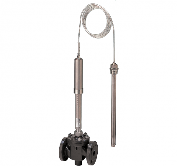 The temperature controller, which consists of a thermostat and a valve, is used for controlling the temperature in central heating systems, district heating systems, industrial plants or industrial processes and in marine systems. It can be used for the control of cold or hot water, steam or oil in heating as well as cooling systems.